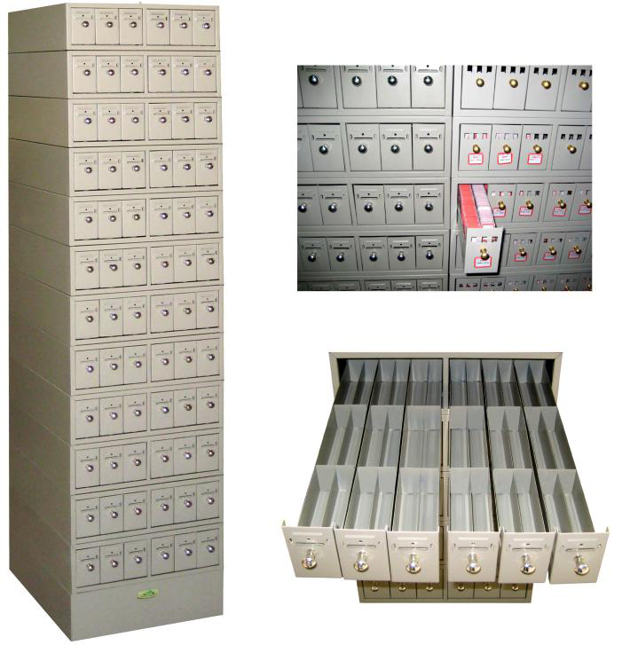规格:W403×D478×H1625 ;七十二抽(十二节,每节六抽,每节带有连接件,加一底座,每只抽屉可存放标准玻璃切片760片,每套可存放约5.5万片,可负载900公斤)